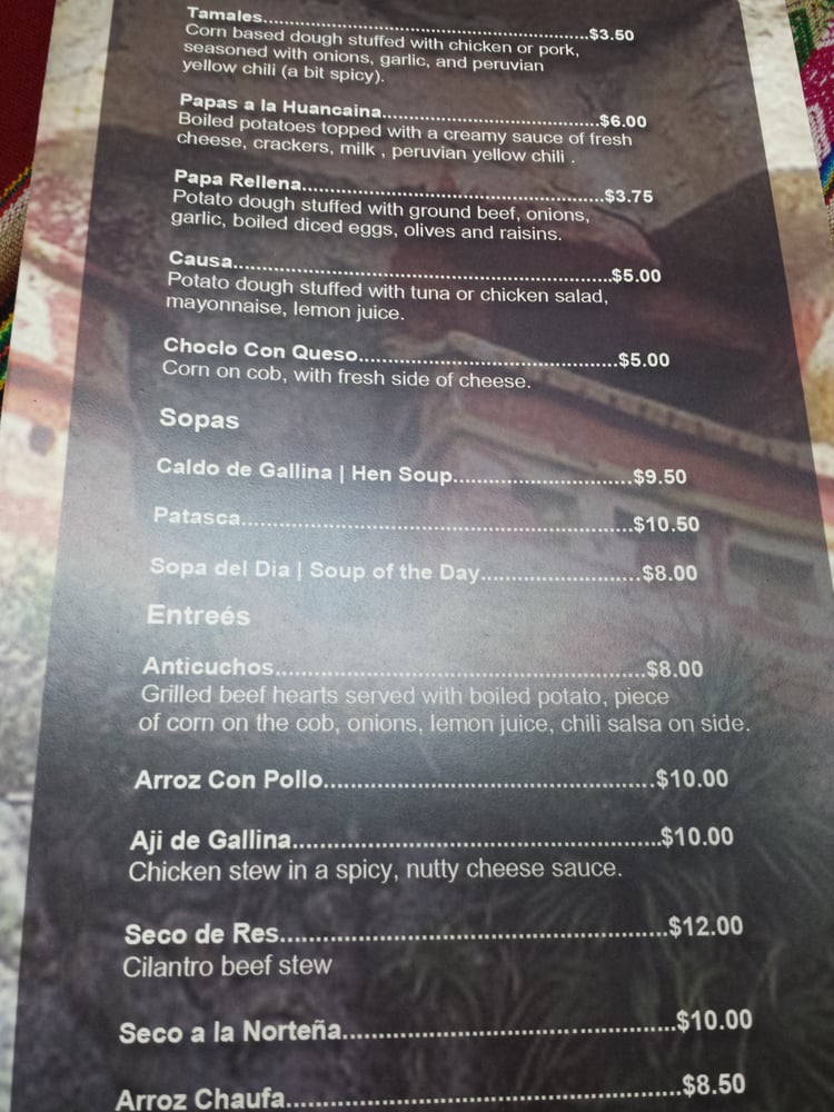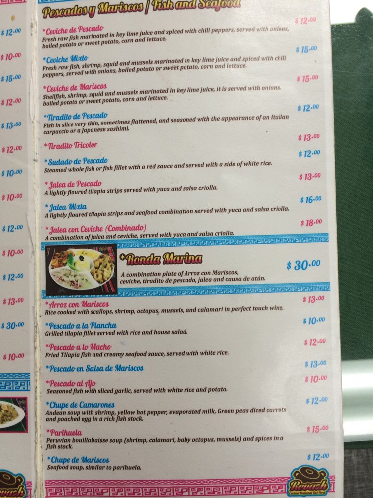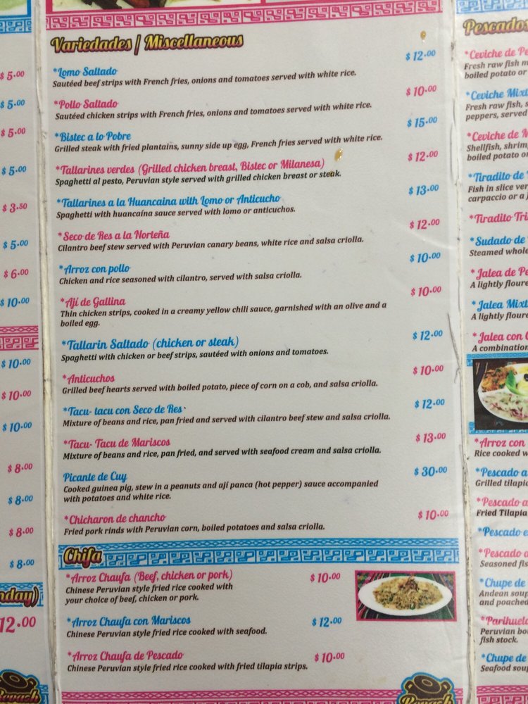 For seafood enthusiasts, the signature Ceviche stands out, marinated in fresh key lime juice and complemented by a medley of vegetables. Whether you opt for Ceviche De Pescado or the generous Ceviche De Mariscos, each offering delights the palate. Additionally, the Chicharrón De Chancho pairs crispy pork rinds with flavorful sides for a comforting, hearty meal.